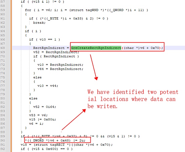 前一个 HWND 对象其尾部数据作为通过 xxxRedrawWindow 中标志检验的参数。后一个 HWND 对象其菜单对象和其 HWNDClass 对象作为最终读写原语的媒介。