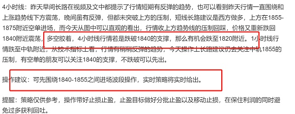 昨天长路在文中给出的可以围绕1840-1855之间做高抛低吸的动作,晚间也在1852附近提醒可以进空,跟上操作的朋友空单拿下一波利润,这几天行情都处于震荡整体中,整体波动并不大。
