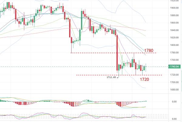 以太走势同步大饼。昨日多单继续持有即可,短期上方关注1780一线压制,这里大概率会有一波拉升突破该位置。稳健者可以在1780附近去减仓只要或者上移止损位做盈利保护。上方若能触及到1830附近可以小止损开空看一波回落。白盘预计行情不会有太大波幅,耐心等待行情给出方向即可。多单进场位置参考6月12日文章思路即可,