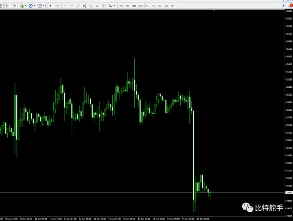 昨日大饼,在利率决议较预期鹰派后,选择了向下继续探底,1小时线的震荡上涨没有等来加速的大阳。一波加速的大阴直接给到了我们波段进场的价格。