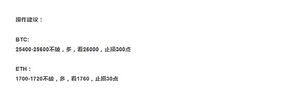 大饼深度回踩1000左右,打破四小时下轨支撑触及日线下轨,目前有所反弹但依旧是处于低位运行,下方24800位三月高点,个人觉得存在一定支撑,白盘有在此区间修复整理趋势。技术指标中,布林带开口向下,目前KDJ三线以及RSI三线向下发散,行情在中下轨区域,目前已经跌出下轨外,行情如果想进一步下跌,必须回到轨道内。个人觉得接下来反弹是必然的,目前macd双线在零轴下方形成死叉,走出低位死叉,下跌空间有限,既然下跌有限,那么迎来反弹才是后面的节奏,所以日内我们低多思路维持!