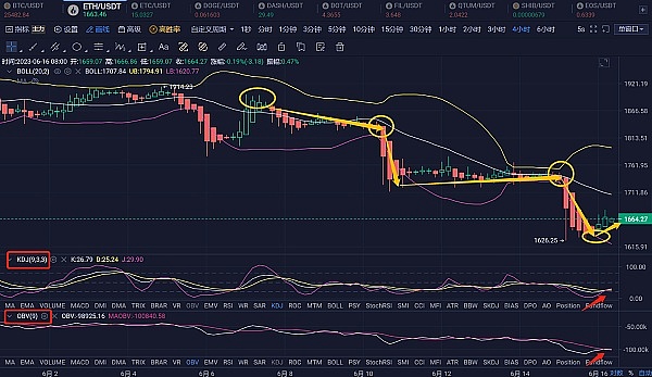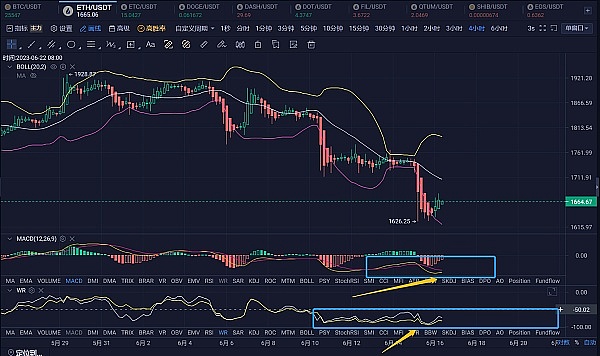 4小时走势中威廉指标 快慢线在50值下方勾头角度向下,并没有粘连上穿50值。局部走势偏向于1665--1680区间盘整后的震荡下移为主。多头并没有摆脱地心引力相反可能还有二次回落底部风险。 MACD方面快慢线上方死叉后,底部空头区间没迎来上穿,好在空头量柱有所萎缩价格暂时性维持多空窄幅震荡或盘整走势。1626附近的触底反弹空间不宜高估