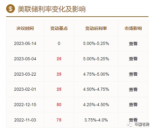 目前的市场,随着比特币和以太坊在2022年11月创造了年内新低后,价格开始回升。值得注意的是2022年11月美联储加息了75个基点。随后12月加息了50个基点。在今年的2 3 5月各加息了25个基点。本月也就是6月份没有加息。