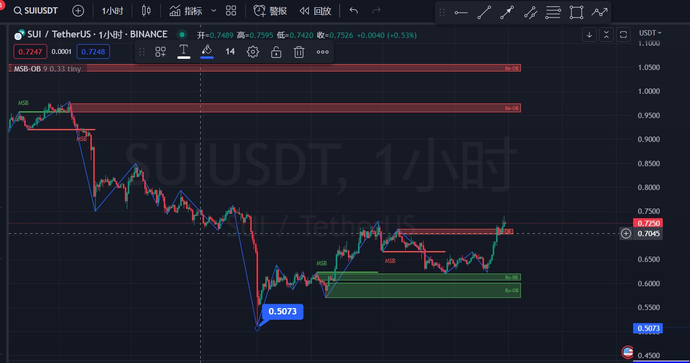 sui多次强调0.5的位置可以进场,目前已经有40个点利润。