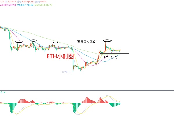 经常看我文章分析的朋友都知道,其实我周末是很少操作的,因为周末行情走势慢,波动小,就不太愿意去操作;但是昨日整体还是非常不错的,午后ETH价格反抽1745区域,盘中及时给出市价空,止盈1722区域,周末有这样的利润也是可以了。对比前两日的连续止损,已经是满足了,饭要一口一口吃,交易也是要一天一天做,重点还是在于坚持,今天不理想不代表明天也不行,相信大家都有这样的经历。