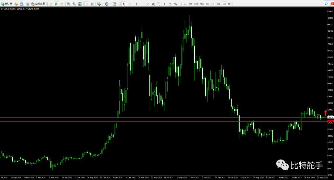 日内或者周内都是一样的思路,逢低位各个支撑做多依然是主旋律。27000之下任何价格都不做空的策略不会变。本周依然看大涨,看好变盘暴走!上周抄底周线最低价格的多单可以继续耐心持有!