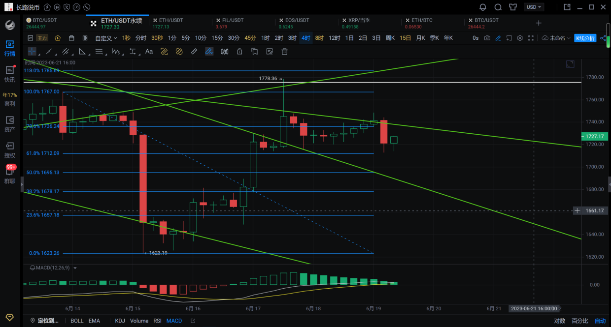 长路说币:6.19以太坊处于盘整期,关键位置1775很重要