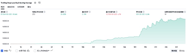跟踪止损双重移动平均线,使用了常用的双均线思路,改进了止盈、止损的设置,效果如下,详细实现欢迎交流!