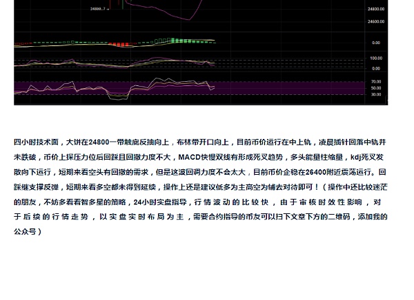 比特币4小时图中,布林带缩口后重新开口,币价已经在上轨上方,目前是指标跟不上k线,显然继续拉升还需时间,要么回调拉升,要么震荡后拉升,想直接拉升还缺乏契机,目前低点不断在提高,KDJ三线仰头向上运行,RSI三线有在超买区间运行,所以个人感觉日内不回调不多,不震荡不多,也不建议直接多,macd双线在零轴上方金叉已成,多头能量柱持续放量,走势进一步上行缺乏时间,MACD双线下方的绿色空心柱判断,越是空心拉的越高,越是实心越是下跌,现在空心柱已经到达一个饱和的状态,不建议去追,所以今日给出建议,回撤多,高位空。所以日内回调布局多!以太就不多做分析了,走势跟随大饼。