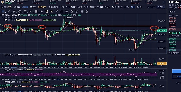 BTC短线操作参考 可以在下方26780附近轻仓位进场多头 止损放到下方26550 止盈区间27150--27400