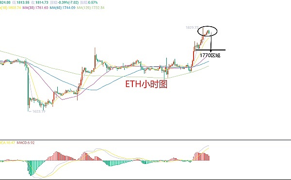昨日实实在在是止损掉了,从来不为止损找借口,我们给出ETH1729.5区域空,随后价格回撤低点到1715区域附近,而根据当时行情走势我是没有提示止盈离场的,下跌明显,K线形态连阴,凌晨后价格冲高破位前期高点位置,也就止损我们空单了。周线级别价格也到了关键位置,均线阻力在1830区域,所以今日的欧盘强弱是关键了。