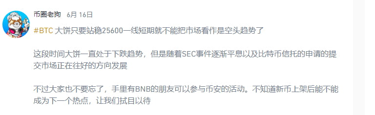 BTC:早在6月17日,老狗就告诉了大家大饼站稳25600一线短期就不能把市场看做空头趋势了,就在当天大饼就远远突破25600上方。目前大饼最高价格来到了29088美元附近。币价还没有突破之前29820附近高点。短期支撑28000。