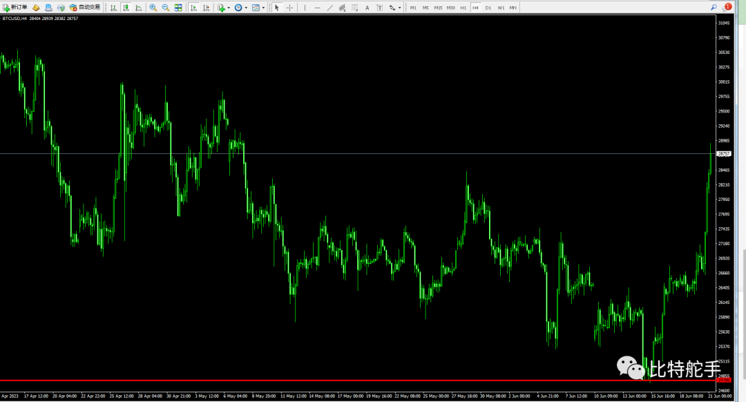 本周二,EDX交易所的消息传出后,比特币(BTC)在美股盘中拉升,午盘一度涨破2.81万美元,创5月29日以来盘中新高,较日低回涨将近1500美元、涨超5%,美股收盘时处于2.8万美元上方,最近24小时涨超5%。”