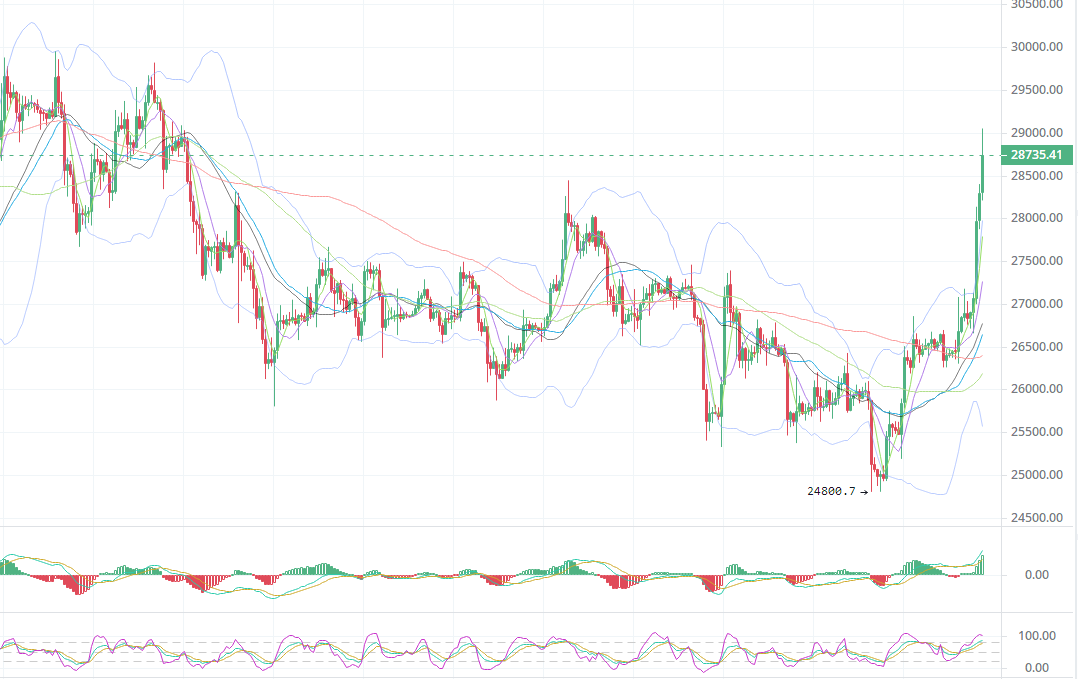 BTC:上方29700-30000空单进场, 目标29100/28300 止损30100