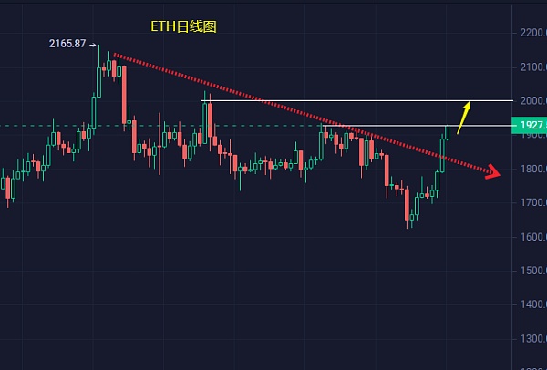 以太坊,对比同一时间的走势结构以及价格,比特币几乎都要触及新高位置,而以太坊才走到半山腰,也就是说以太坊目前的上涨还是依靠比特币的推动,还有一段路要走,但是这段路能不能自己去走,需要打个问号,因为在前期同样出现过姨太价格上涨但大饼出现滞后的情况,所以两者达不到真正的幅度同步,只能在时间上同步;不过今早的表现来看,在大饼冲高回落的时候姨太多头还能继续保持上涨,所以我个人认为,如果是调整,姨太可能会在时间上延后,多头还有望在接下来再冲一冲;目前日线触及1920一线的阻力压制,如果日线能够有效企稳此位置的话,预计会继续测试2000关口。