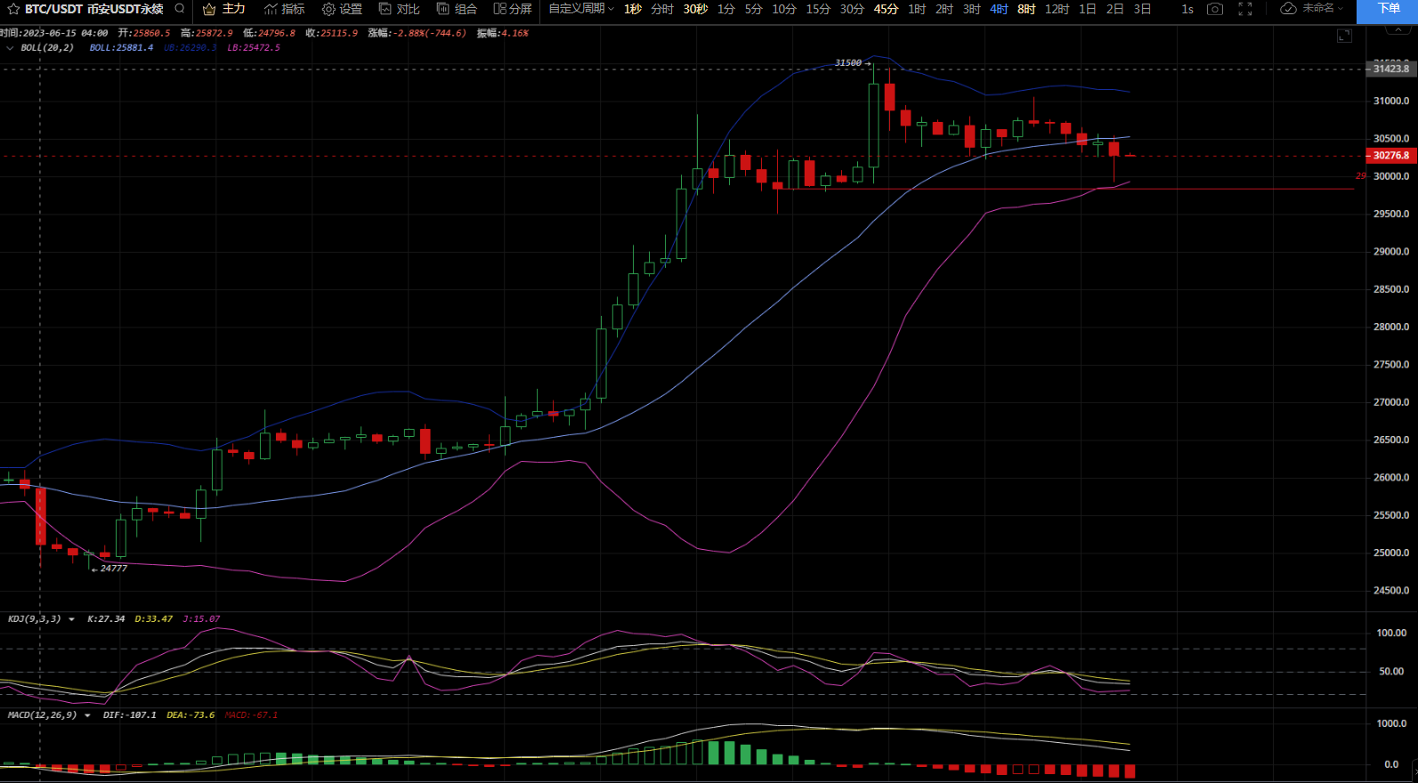 BTC:31000-29800空单进 目标30200-30000 止损31200