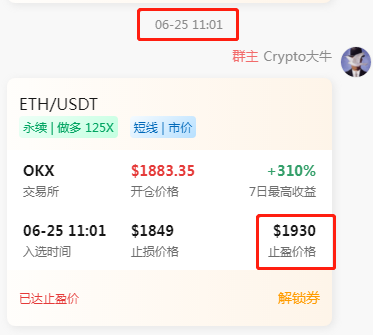 昨天给到一笔以太坊的多单完美止盈在1930,关于箱体结构的行情我们之前有做过很多次,而昨天梳理盘面时价格正好来到了箱体底部,于是市价1883进行了多单的布局,行情很配合,历经三个多小时就达到了我们的1930目标位。记录真实的交易,错了就是错了,对了就是对了,有迹可循,拒绝马后炮。