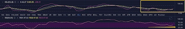 KDJ方面夜间J线上穿相交K,D线后,盘中走势走出一波高位横盘后,当前三线水平位相交走势仍旧无变化维持盘整格局。此刻J线角度有轻度上行开口,RSI线头逼近50值区间,短线走势有先行窄幅震荡特征,但拉升高度还取决于上方阻力位30500附近的突破情况而定