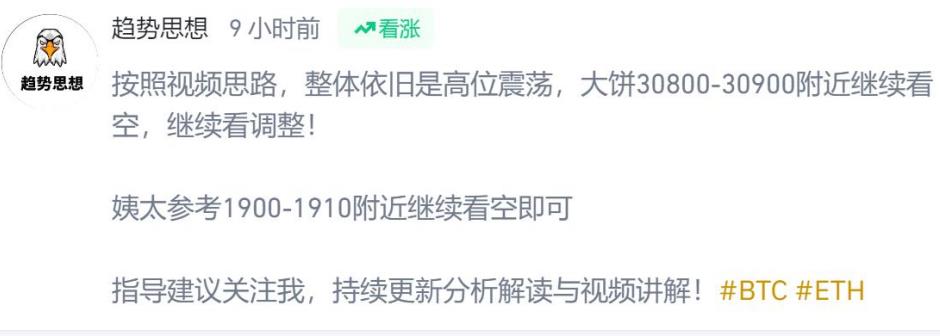 ETH/BTC提前给到高空,跟上再次吃肉!昨晚分析与视频讲解给到以太1900-1910附近空,最高1912,大饼30800附近空,恭喜跟了的朋友,记得减仓保护带保 本损!
