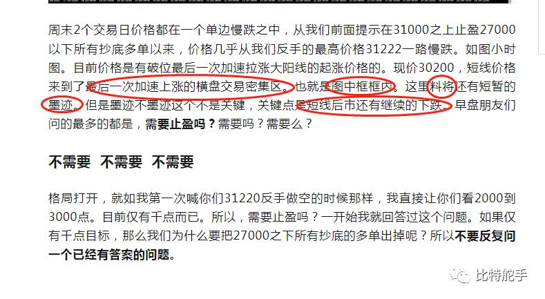 如上图,那是前面文章提示。我们在31000 附近布局的空单,目标远不止短线的千点。如果仅有千点目标,我们不会提示27000之下的多单全部止盈。所以请坚定且耐心的持仓,别一直问需要止盈么?需要止盈吗? 近期连载的文章,难道没有给你足够的信心吗?账户应该也是一直有利润的吧?只是行情波动慢,波动太慢这个问题,舵手暂时没有办法...