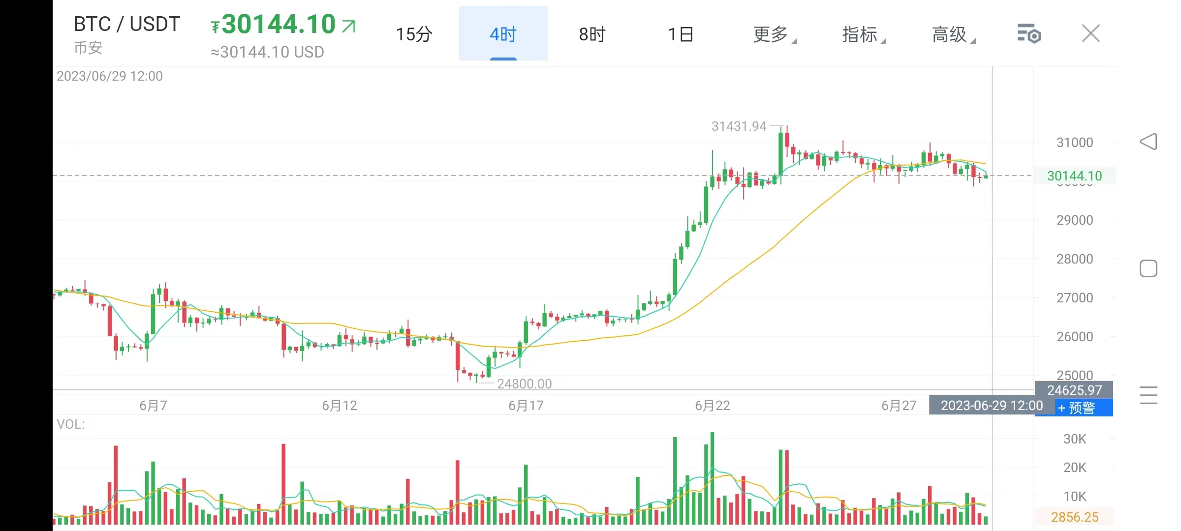 BTC:30900-30600空单进 目标29900-30100 止损31100