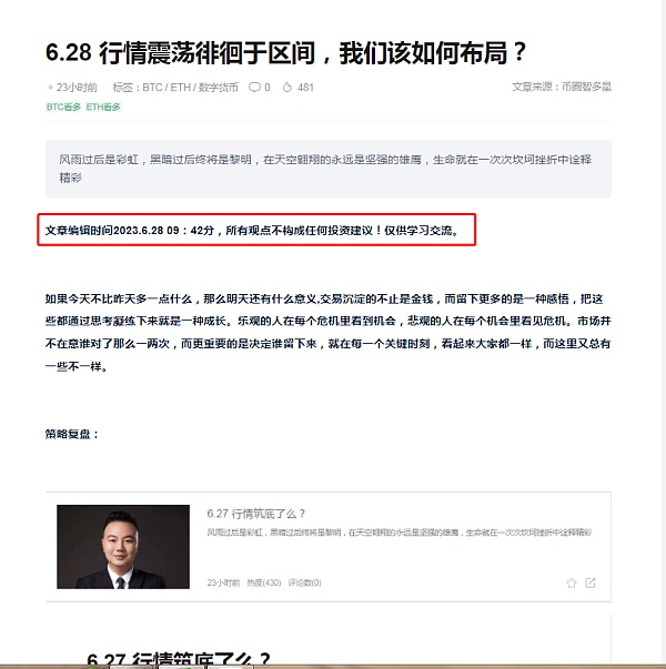 文章编辑时间2023.6.29 10:23分,所有观点不构成任何投资建议!仅供学习交流。
