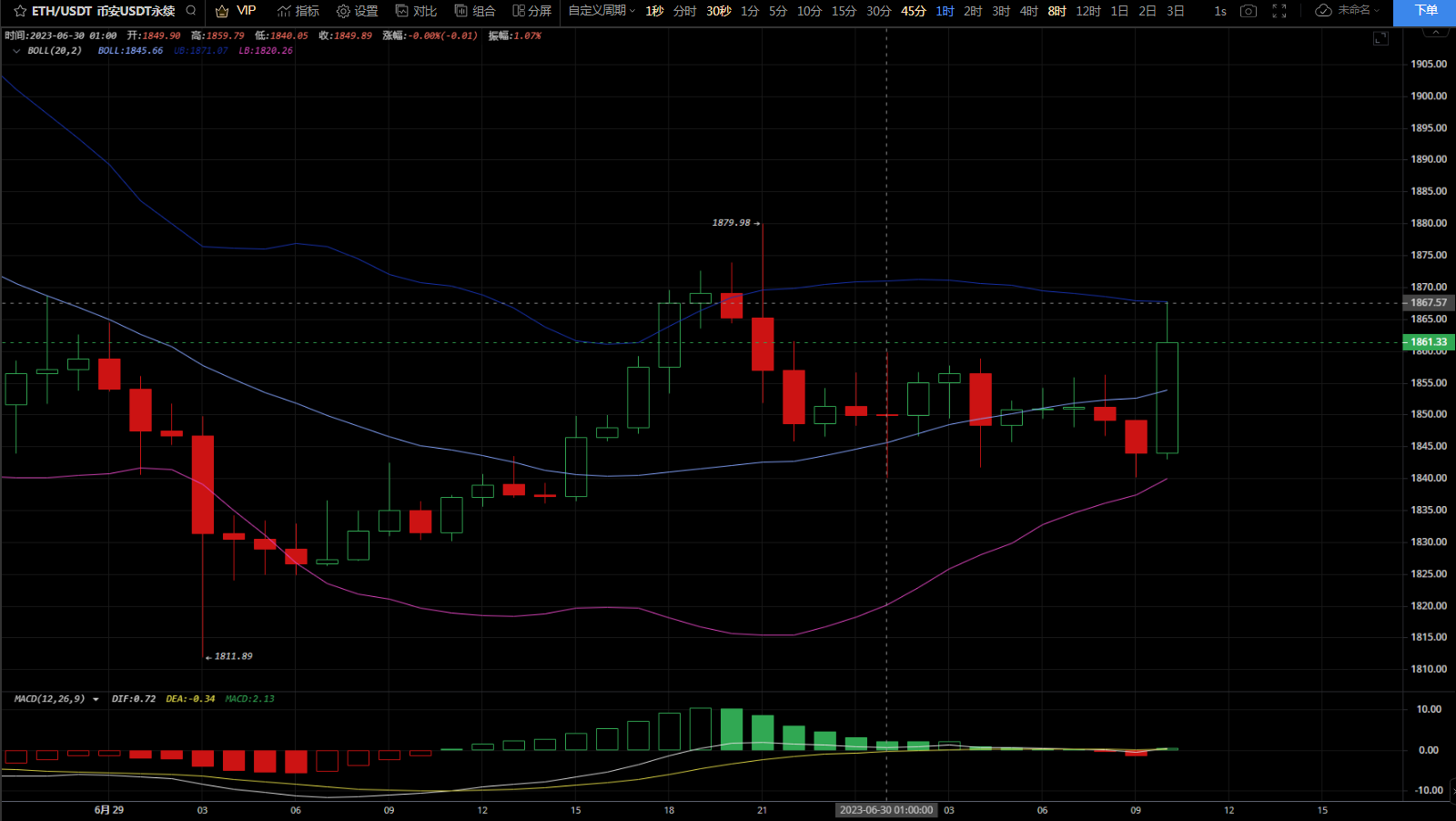 ETH:1830-1860多单进 目标1870-1900 止损:1810