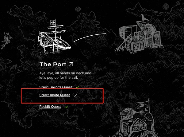 返回主页,打开Step2 复制你的专属邀请链接,邀请你的朋友完成基本任务。一旦你的受邀者完成了水手的任务,你的邀请将被视为有效。