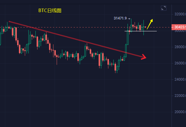 比特币,原本以为昨晚以比特币带动的下跌会让这轮上涨后的调整画上句号,没想到尾段的反弹收复结结实实的来一波洗盘,这种骚操作也算是狗庄的一贯伎俩;比特币,昨日的下跌以其为首,盘中跌破30000关口支撑后最低下探29430,不过小时线在经过急跌之后没有形成延续,尾盘反弹重返至30000关口上方,日线最终报收长上下影的十字星,既然日线没有有效跌破支撑,那么这一出闹剧就没有打破短期区间震荡结构,经过这一次拉扯之后,多头还是通过支撑守住优势,那么短期我们看二次突破的思路继续保持,短线上则继续依托支撑低多看涨。