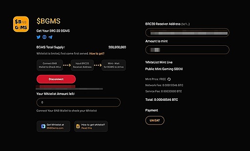 $BGMS - 第一个BTC智能合约项目 BRC20 代币?