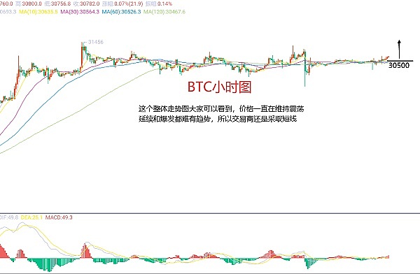 7月3日比特币(BTC)合约技术面分析:今日方面,大周期日线级别昨日报收小阳线,K线形态上连阳上涨,价格处于高位横盘整理,附图指标多头缩量运行,所以近期的走势看似强势实则也是难看出来延续的,指标不统一就很难出现爆发;短周期小时图价格波动时间还是在凌晨,探底回升今日早间延续震荡上行,而依照当前的走势来说,今日看日线延续收阳的话,日内回撤就不能大了,否则也是震荡,本来延续就差,所以要激进点了,因此今日BTC短线合约交易策略:回撤30500区域多,止损30200区域,目标看31200-31300区域;