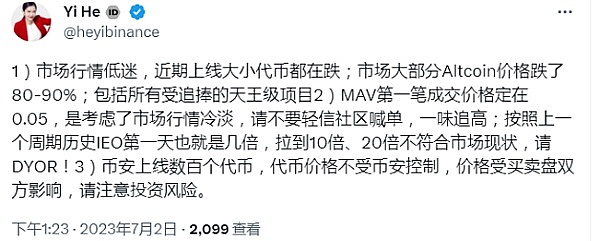 何一表示,币安上线数百个代币,代币价格不受币安控制,价格受买卖盘双方影响。不知道大家对于这点如何解读?我自己的解读是: