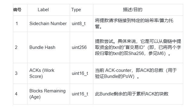 侧链全节点将提款请求聚合成一个大集合。侧链计算M6的样子,以支付所有这些提款请求。最后,侧链计算这个M6的哈希值。这个32字节的哈希标识Bundle。