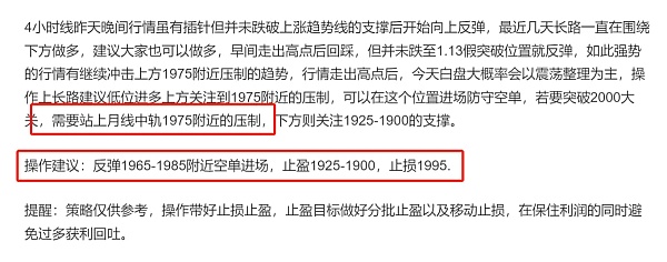 操作建议:回踩1940-1925附近多单进场,只是1910,止盈1975-1990.破位可上看。