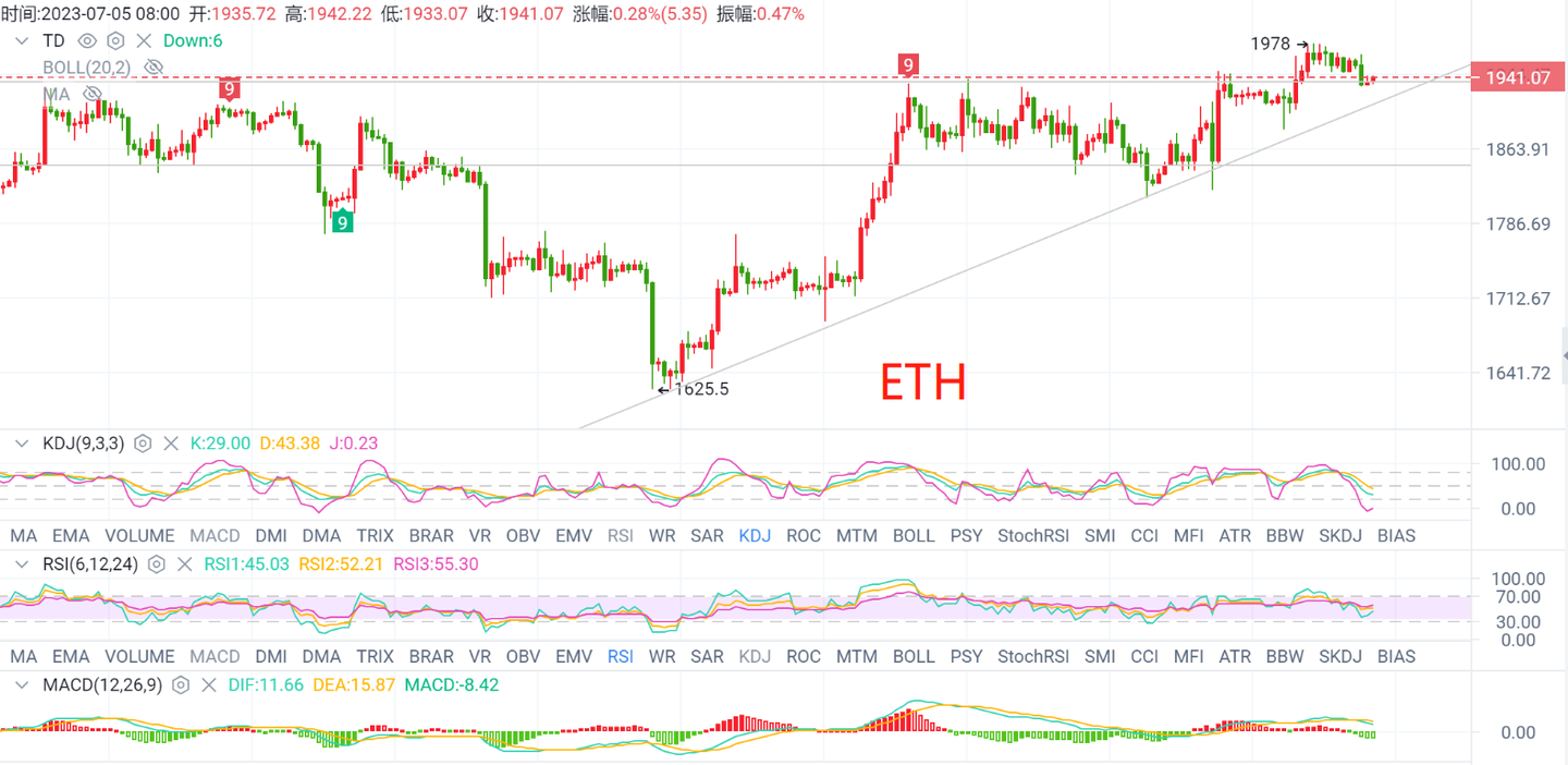 午夜以太坊短线也是回踩下跌了,对于昨天的行情走势而言,四小时的行情也是出于高位来回震荡筑底的阶段,短线的行情要想继续进行突破,还是要走一轮回撤以后,再来打开后续的区间,昨天群内的行情布局中也是讲过,对于晚间的行情,就是先考虑一轮回撤筑底,到了支撑筑底结束以后,再来考虑反弹上涨就可以了,行情也是没有意外,因为目前行情下方支撑还在上移中,行情也是处在时间交换空间的阶段,短线行情回撤走完筑底以后,再来走后续的反弹就可以了,维持好区间再来继续上看突破上涨就行!