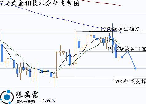 黄金从日线上看,趋势偏中性或下行倾向,无法突破20日移动均线1930.93阻力位,被视为首个阻力位。1919.89目前已经下破,黄金可能会进一步下行,届时空头将目光瞄准1900。黄金从4小时线上看,价格受MA100均线压制大幅回落,全线指标再次转为空头运行,1893-1935这轮反弹可以理解为了更好的下跌。整体来看,日内黄金张晶霖建议反弹做空为主!