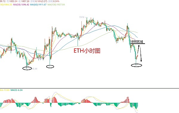 7月7日以太坊(ETH)合约技术面分析:今日方面,大周期日线级别昨日报收中阴先,价格是跌破了前一日低点位置,K线形态上连阴,目前价格是接近了前期的低点位置1830区域,附图指标死叉向下,但价格还是处于高位,所以今天能否延续向下破位低点支撑是关键;短周期小时图昨日价格在欧盘承压下跌,凌晨延续今日早间在触及前期低点1930区域附近支撑反弹修正,当前K线形态连阳,而昨日美盘修正高点在1890区域;所以日内也是要等反抽再空;因此今日ETH短线合约交易策略:反抽1890-1895区域空,止损1921区域,目标看1940-1930区域;