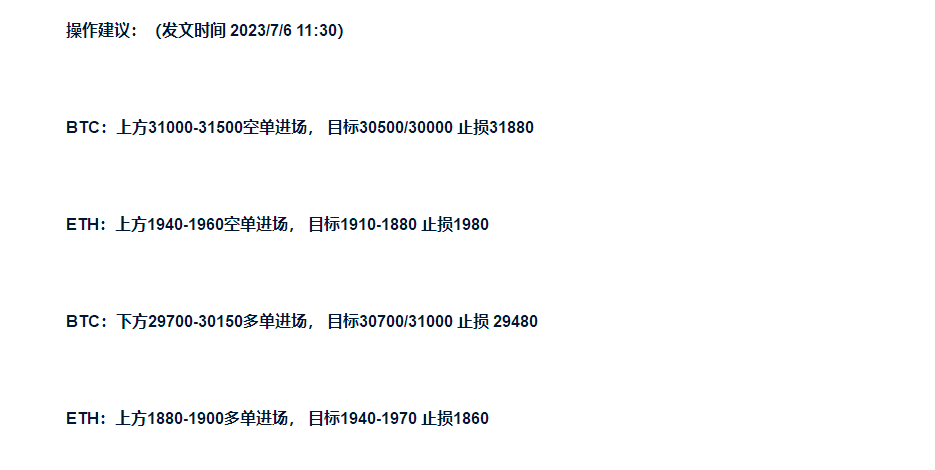 BTC:上方30700-31000空单进场, 目标30200/29600 止损31200