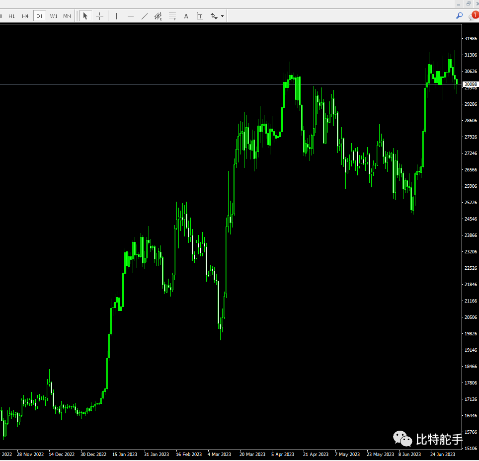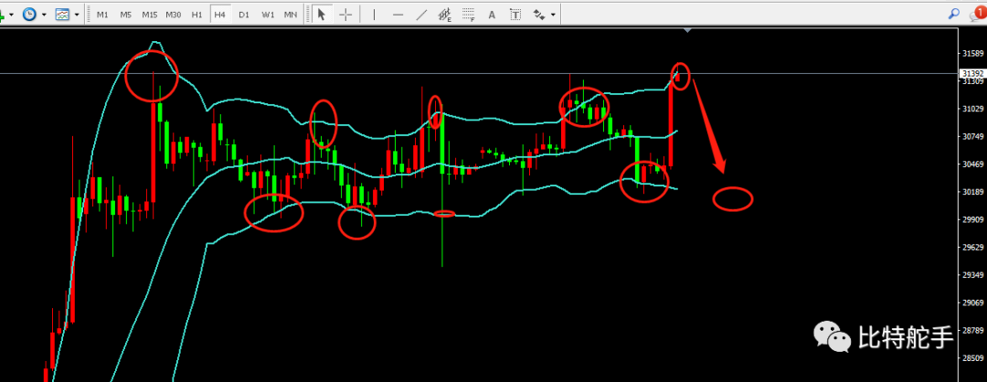 每天的波幅,和波动率是十分不稳定的。因此我们文章给出的建议和策略都是相对的,昨日文章建议反弹30800即可空,奈何昨日盘中波动率加大了一些。我们盘中也并未直接在30800下手入场空,市场变化快,文章具有局限性。昨日我们是有在31200 31500实时给出空头策略的。大多数人都在31400 31450建仓到空头的。31500几乎是最高价格。短短6个小时,浮盈近1400点。众所周知,我们的空单止损价格一直都在31888。所以近些天无论你在哪个价格做了空,都是有利润的。持续空头思路是有得到市场认可和承认的。