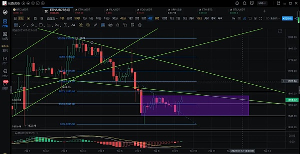 以太坊行情分析:昨天日线走出长下引线T线,早间反弹1875并未突破回踩,而凌晨在60日均线的位置获得支撑后又开启了反弹之路,同样再次冲击1875附近压制,今天主要是关注1875的突破,若能顺利突破,则行情将有机会继续反弹,而随着日线布林带的缩口,长路觉得会有一段震荡修复行情,同样要关注到上方1900附近较多的积压盘,长路在前面也说到过庄家应该不会让这部分人这么顺利的走出来。