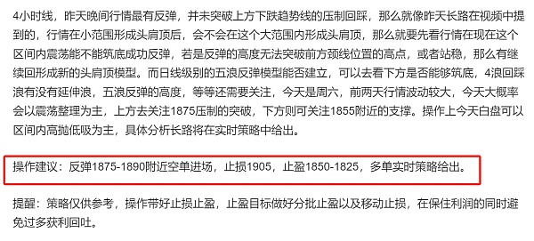 昨天长路在文中给出的反弹1875附近进空的策略,跟上操作的朋友空单可拿下一波利润,而结合长路在实时策略中给出的1855附近的多单,多单也有收获。