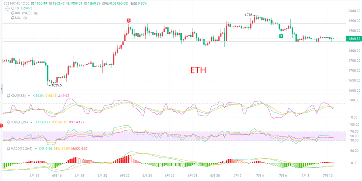 大饼横盘于30000这个位置已经差不多有半个月了,日线行情目前进入震荡末期,行情在本周大概率会再次延续上行,关注31500附近压力,加上美联储下半年继续加息的预期基本已成定局,U的汇律也快来到了历史前高。这轮行情的拉升就快要来了,所以我们本周保持低位接多的思路为主。四小时图看,虽然币价有所回撤,但是力度并不大,币价依旧是保持上行趋势。下方支撑依旧是在29500-30000这一带的位置,回撤下方支撑可以继续进行多单的介入。上方的压力目标在31000-31500区间,那么币价在区间内运行我们保持高抛低吸。如果行情能有效突破压力区间 那么多大可以看向32500附近,交易上尽量等待好的点位去进场,小止损去开仓即可。
