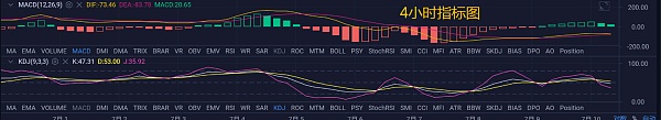 4H走势指标图中较关键指标MACD方面,水平位双线相交后,快线当前角度下行贴合移动平均线,结合小时线一起来看,盘面走势有先扬后抑, 短暂拉升后接价格指数震荡下行走势。KDJ指标 J线下穿K,D线步入空头区间,当前角度随着时间量的推移有进一步放大迹象。 也推演处行情走势较大概率先扬后抑。 反弹力度难以有起色。短线合约方面逢高去空
