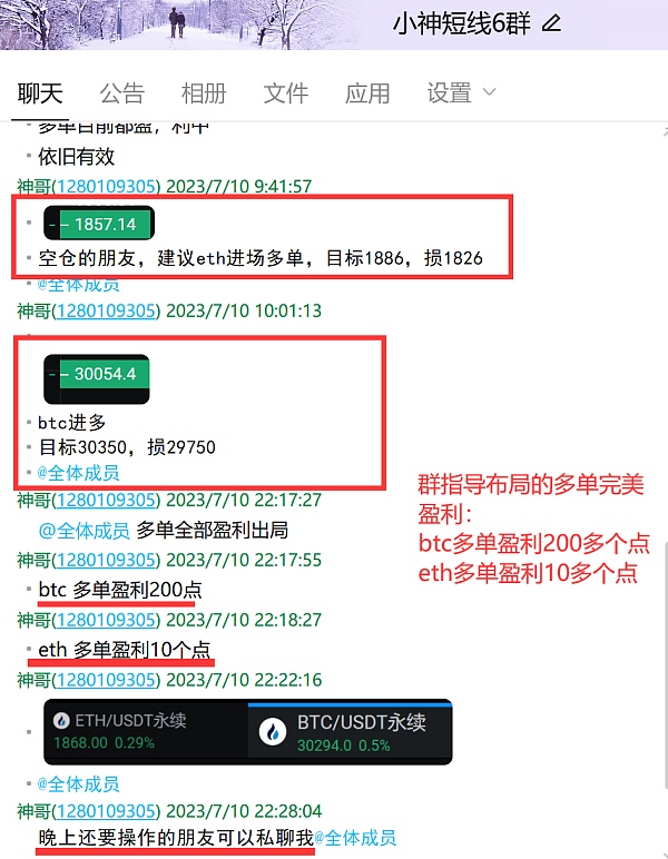 恭喜行情暴涨,小神布局的2单多单完美拿下,裙指导btc盈利200个点,eth盈利10多个点,一对一指导btc多单盈利400个点,eth盈利30个点: