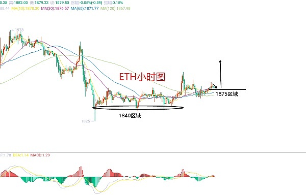 7月12日以太坊(ETH)合约技术面分析:今日方面,大周期日线级别昨日报收小阴线K线形态上单阴单阳价格还是继续维持区间震荡走势,在没有破高或者破低的情况下,多空都是没有明显的信号的,那么也就不能过分去看了,操作上还是继续保持短线对待;短周期小时图整体走势震荡上行,且低点上移回撤没有力度,昨日低点位置在1860区域附近,而价格也有明显的要价反弹迹象,因此今日ETH短线合约交易策略:回撤1875区域多,止损1859区域,目标看1910-1920区域;还是再次强调,欧盘强弱是重点,交易不是固定的,需要根据实时走势做出实时调整。