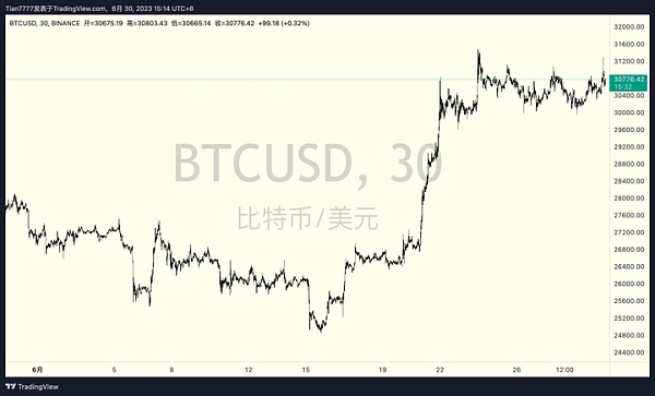 再次,ETF的申请可能会对比特币的价格波动产生影响。短期来看,无论是申请通过还是不通过,消息面的影响都将使市场价格产生较大波动。6月30号SEC 表示比特币现货ETF的申请文件不足时,比特币价格1h波动达到5%左右。因此投资者更应该注意消息面带来的风险。