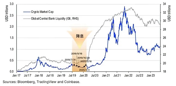 从供给来看,比特币总量在一开始就已经确定为2100万枚,每四年一次的减半将会降低比特币的通胀率,减少供应量。对于比特币这种供给弹性低的物品,伴随需求上升,供应减少,大概率将迎来价格上涨。