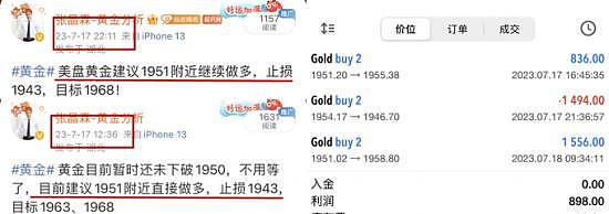 周一3波多单开门红(文章策略与自媒体策略会有差异,请做出正确参考):昨日黄金两次在1958附近冲高回落,我们的文章也提示了,金价有回调的风险,但张晶霖还是不太看好。早间提示1951做多,美盘提示1955、1951做多,就说明了这一点。周一交易3单,盈利4.5美金。关注张晶霖的朋友都有目共睹,每日只提供现价单,不信翻阅自媒体历史记录,近期操作不理想的朋友不用着急,我们中线布局(1953多)已经开启,大家可以考虑跟上。