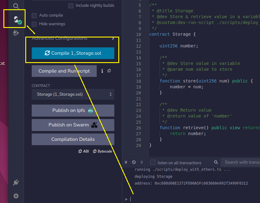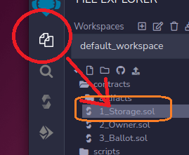 一旦我们选择1_Storage. sol,我们就可以编译它(在第三个侧边栏选项卡上)。