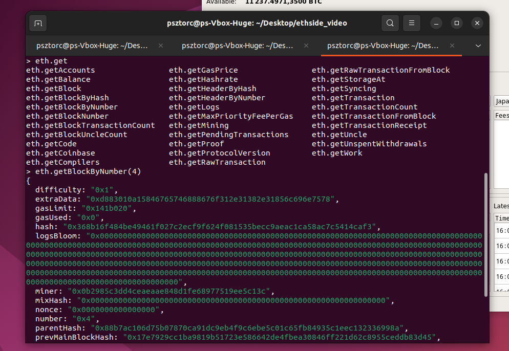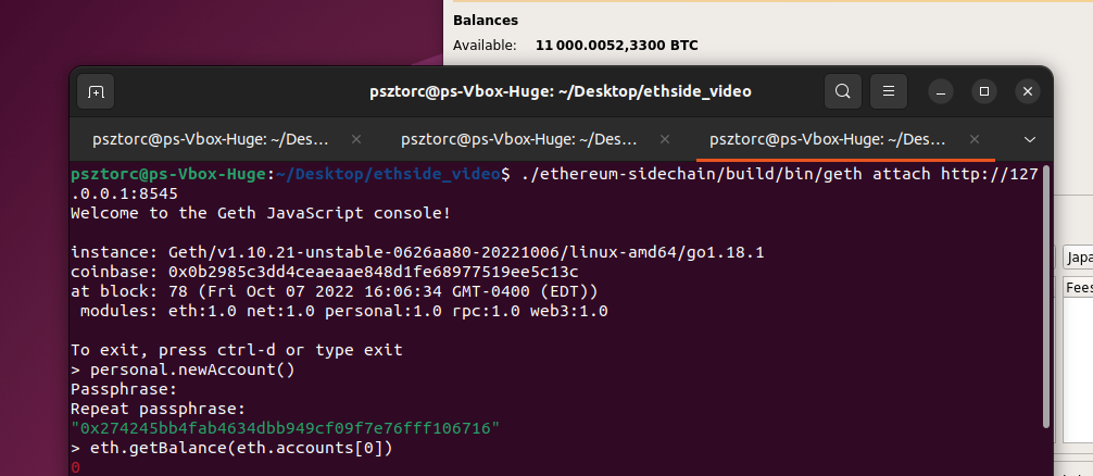 现在我们想下载、构建、运行和连接ethSide(我们的以太坊侧链克隆)。在新的终端选项卡中运行: